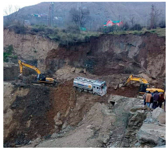 - Fayaz, M.; Khader, S.A.; Rafiq, M. Landslides in the Himalayas: Causes, Evolution, and Mitigation—A Case Study of National Highway 44, India. In Disaster Management in the Complex Himalayan Terrains; Springer: Cham, Switzerland, 2022; pp. 43–58. [Google Scholar]