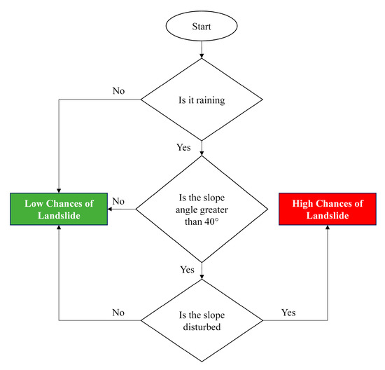 Classification and interpretation of the chances of a landslide based on the training data using the decision tree algorithm.