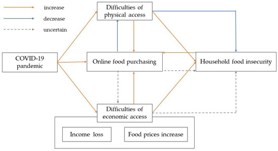 Relationship between COVID-19, household food insecurity, and online food purchasing. Source: Authors’ own compilation.