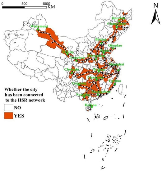 The focus dummy variable was whether the city in which the households lived had been linked to the HSR network or not []; when the city had been linked to the HSR network, HSR = 1; otherwise, HSR = 0.