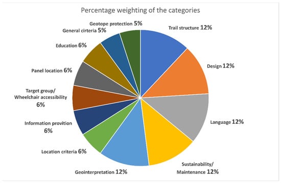 Nevertheless, geotrails are still—in contrast to nature in general or forest trails—clearly in the minority. A survey of nature trails in Germany conducted in the late 1990s showed that of the then 660 trails, only about 20, or 3%, dealt with geology [55]. Eder and Arnberger [57] analysed a total of 690 trails in Austria. Geotrails had a share of 8.6%, supplemented by 4.2% that included the topics of mining and industry. However, it is not always clear how the criteria for classification as a geotrail are determined. In the UGGp Swabian Alb, for example, some trails designated as geotrails had (significantly) less than 50% of the stations with geoscientific content (see Section 5.1).