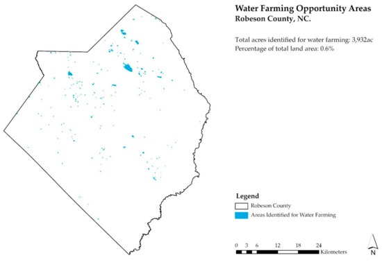 As noted, the results from our study indicated that about one-third (34%) of Robeson County had open crops and pastureland that met the criteria for landforms suitable for NBS practices, and about 16% could be converted to the best NBS practices. The land suitability and geospatial methods and results described here complement the burgeoning literature on NBS as one of the promising new methods to adapt to climate change and reduce the impacts of flooding. The approaches described offer a detailed, rigorous, and reproducible set of methods that can help select NBS practices as a practical applied tool. They rely on publicly available data and can be adapted for use in other U.S. locations.