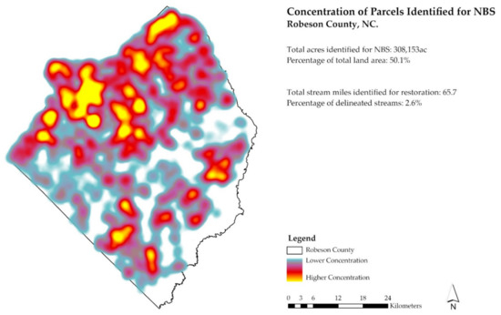 Our study outlines in detail how this process of geospatial analysis can occur in Robeson County, North Carolina, but it is also transferrable to similar environmental contexts across the broader U.S. Southern Coastal Plain with typical U.S. geospatial approaches and data sources. This article summarizes the methods in detail, which stem from the extensive public databases available for GIS systems; knowledge of NBS systems appropriate for our target locations in eastern North Carolina; the input provided by our study team of scientists, and farm technical service and policy experts; and geospatial analysis with ArcGIS Pro. These methods can provide a template for similar geospatial analyses, mapping, and identification of specific desirable tracts for NBS.
