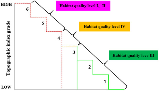 Topographic distribution index of different levels of habitat quality.