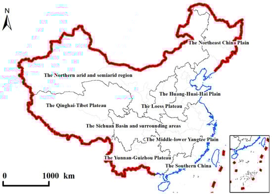 The Northeast China Plain is an important grain base and animal husbandry base in China because of its flat and open terrain, fertile soil and sufficient per capita cultivated land resources. The flat terrain, fertile soil and abundant water resources in the Huang–Huai–Hai Plain provide sufficient conditions for the development of agriculture. The Middle–Lower Yangtze Plain has a beneficial temperature and water resources. It is an important aquaculture and cash crop area in China. The non-agricultural economy in southern China is highly developed, and the level of economic development and farmers’ income are in the forefront. However, due to the scarcity of cultivated land resources and low agricultural land productivity, grain self-sufficiency is extremely low. Most of the northern arid and semiarid region is desert and Gobi. The region is one of the most sensitive regions to climate change due to its fragile ecological environment and low vegetation coverage. The average annual precipitation in this area is less than 300 mm, and the evaporation rate is high, so it easily suffers drought conditions. The unfavorable terrain and location conditions of the Loess Plateau restrict the development of non-agricultural industries, and the limited cultivated land resources restrict agricultural production. The landform of the Sichuan Basin and surrounding areas is complex and mainly mountainous. The rainfall is abundant. However, floods and geological disasters occur frequently. The development of animal husbandry has good regional advantages. However, limited by scarce cultivated land resources, agricultural development is relatively slow. The Yunnan–Guizhou Plateau is characterized by complex terrain, large undulation, numerous ethnic minorities and relatively backward economic development. However, its ecological service value is high. The Qinghai–Tibet Plateau is characterized by high altitude, cold weather, undulating terrain and a fragile ecological environment. Agricultural production is dominated by traditional plateau farming and animal husbandry, and the level of urbanization and agricultural modernization is low.