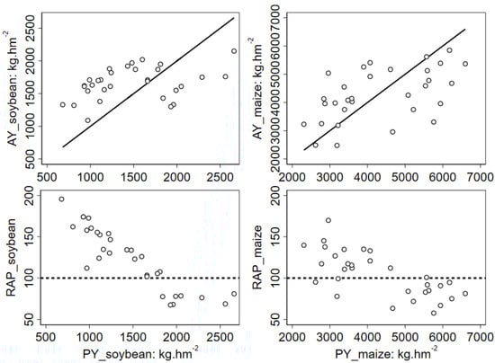 The AY/PY and RAP structure of soybean and maize in China (kg·hm−2, %).
