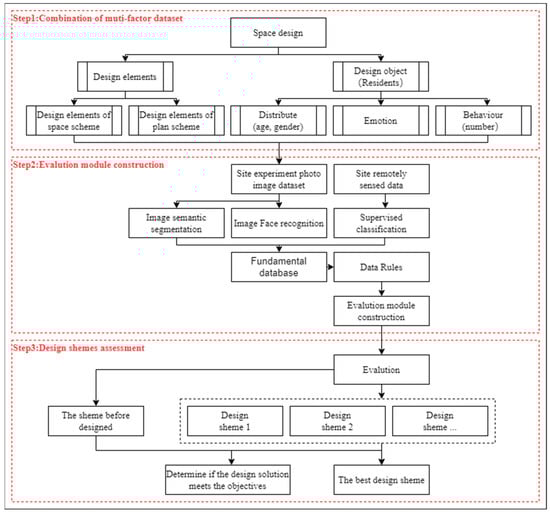 In contemporary and future urban landscapes, incorporating residents’ inherent structural characteristics and emotions into urban scenario designs to enhance interactions between urban scenarios and residents presents a significant challenge. While fundamental design methodologies based on designers’ experience are essential for meeting functional requirements, upholding ecological bottom lines, and satisfying users’ aesthetic needs, there is a dearth of research on design methods for multi-objective urban scenario intelligent design evaluation. Despite numerous articles [,,,,,] that offer experimental methods, research approaches, and perspectives to facilitate the urban landscape spatial design process, there is a lack of intelligent design evaluation model frameworks that quantitatively analyze residents’ emotions through on-site research. This research seeks to address this gap in inquiry and systematically describe the inherent methods and logic necessary to construct an urban scenario intelligent design evaluation model. Employing quantitative research methods aided by intelligent tools, the study focuses on the Xueye Lakeside public scenario design in Jinan City and aims to provide design proposals and strategies for urban design.