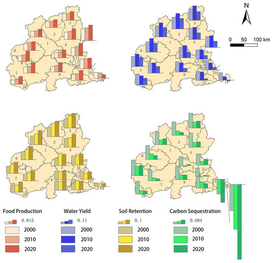 3.1. Variation in the ESs Supply and Their Relationships