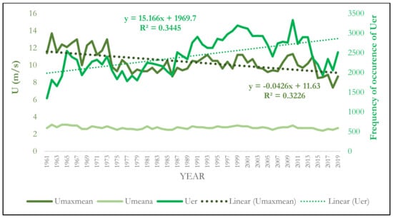 Trends of Umeana, Umaxmean, and Uer frequency during study period.
