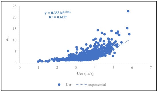 where Ui is wind speed (m/s), Ut = 5.0 m/s (if Ui ˂ 5.0, Wf = 0), ρ is air density (kg/m3), g is acceleration due to gravity (m/s−2), and N is the number of wind events.