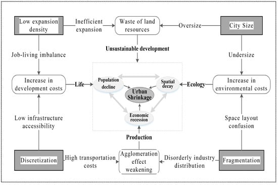 The theoretical mechanism behind the influence of urban form on urban shrinkage.