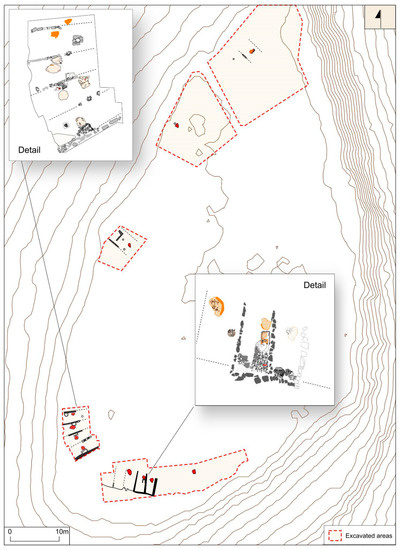 - Lorrio, A.; Almagro-Gorbea, M.; Sánchez de Prado, M.D. El Molón (Camporrobles, Valencia). Oppidum Prerromano y Hîsn Islámico; Ayuntamiento de Camporrobles: Valencia, Spain, 2009. [Google Scholar]