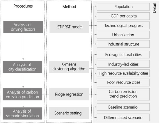 - Driving factors analysis: Based on the STIRPAT model, the drivers that significantly affect the level of carbon emissions in Chinese cities were selected as variables;