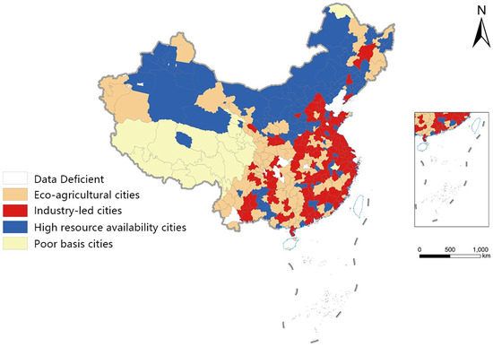 - Based on the degree of variation in carbon emission factors and trends in different cities, the 340 Chinese cities were classified in this study into four types regarding carbon emission attainment: eco-agricultural cities, industry-led cities, high-resource-availability cities, and resource-poor cities;