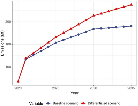 In order to project different carbon peaking pathways for Chinese cities, two scenarios were identified that can be used to project levels of carbon emissions from Chinese cities up to 2050. The two scenarios were the baseline scenario and the differentiated scenario. In the baseline scenario, the factors’ growth rates should be judged in line with national policies and relevant historical trends (Table 2), with most factors showing a small downward trend. Due to the large number of cities in China, these values are only average values.