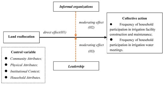 A considerable amount of research has confirmed that under the collective property rights system of rural land in China, land reallocation may reduce farmers’ long-term operational expectations []; this instability in land rights acts as a sort of random tax [] and may even lead agricultural operators to adopt predatory operations for short-term profits []. However, these studies have not considered the impact of land reallocation on irrigation collective action in villages. Does land reallocation not only negatively impact agricultural economic development but also hinder the governance of the commons in villages? Furthermore, has China discovered a strategy to overcome the provision dilemma? Surrounding these two key questions, we will further elaborate on the research hypotheses of this paper.