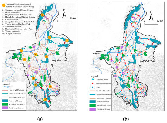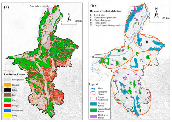 (a) MSPA landscape spatial pattern; (b) Ecological source space group in Ningxia Hui Autonomous Region.