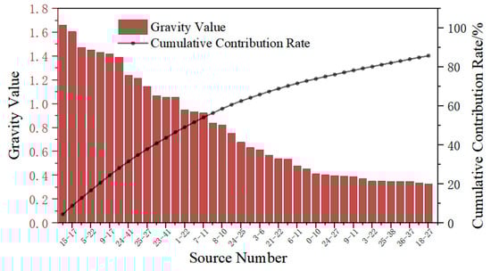 Magnitude of gravity values and cumulative contribution rates between source areas.