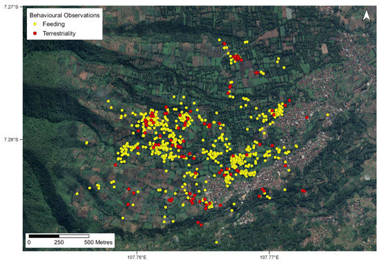 Many wildlife species are being forced to adapt to human-modified areas to depend on their survival and continued reproduction. What is evident from this study is that the Javan slow loris has a strong tendency for natural habitats. Although human land use areas cover a significant portion of the Javan slow loris’s habitat in this region, the lorises still show a strong preference for natural land. Due to the terrestriality risks, arboreal connectivity is a vital aspect for their safety, and this cannot be guaranteed in the existing design within urban areas. This further emphasises the need to consider wildife when developing natural habitats into those of human-managed landscapes. The local villages in the region are considered to be slow-growing and are without plans to encroach further onto the natural areas of land. Javan slow lorises are rarely sold in this area, and local hunting bans are heavily implemented in the region including penalties, particularly as the forest to the west of the study site is a protected area. With the vast majority of the study site already being dominated by humans and their land uses, further awareness and implementation of systems that can conserve the Javan slow loris are vital. For example, a number of sustainable agricultural projects in the area continue to develop [36].
