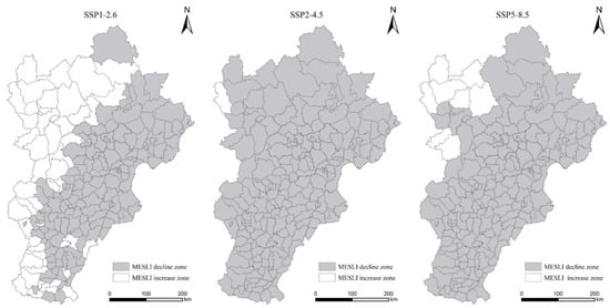 Spatial variations of MESLI under three SSP–RCP scenarios.