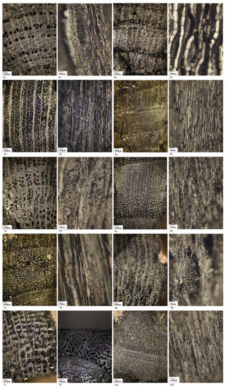 - Schweingruber, F. Anatomy of European Woods; Paul Haupt: Bern/Stuttgart, Germany, 1990. [Google Scholar]