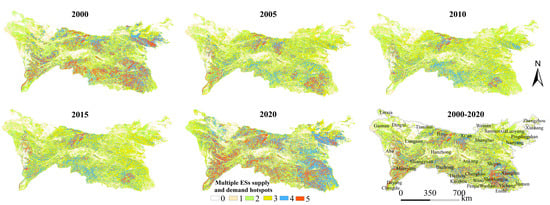 Distribution of hotspots of ESDR for multiple ecosystem services.