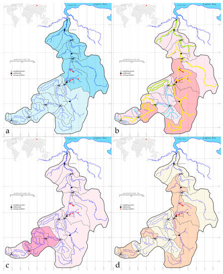 The quantitative determination of the accumulated environmental damage from economic activities, including the mining complex in Siberia and the Far East, entailing further selection or development of environmental measures to restore disturbed natural complexes, is an urgent task. Attempts are being made to solve this problem [44,45], but usually, there is not enough reasonable data for this. New research methods, such as satellite remote sensing, confirm the phenomenon of devegetation in gold mining areas in the Kolyma River basin closest to our study area [45]. At the same time, our experience in ecological mapping using statistical instruments [33] and remote sensing [34] confirmed the positive results of these methods’ implementations in monitoring. Moreover, the mapping results on the catchment basin surface can show the problematic places of impact and ecosystem variables that can be included in the monitoring network [8,16]. This method was implemented in current research.