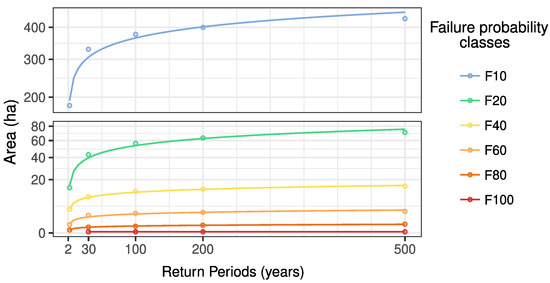 - Initial susceptibility assessment: We first calculated the susceptibility to shallow landslides without considering the contributions from vegetation cover. This analysis utilized rainfall depths corresponding to return periods of 2, 30, 100, 200, and 500 years.