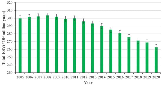 Trend of the total ESV in the PRD from 2005 to 2020.