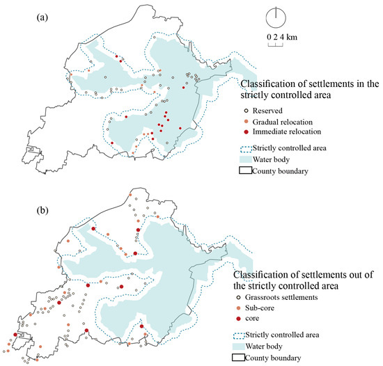 The additional following suggestions can be made to optimize local spatial use after formulating relocation strategies for control-area villages and addressing the ecological threat posed by the expansion of water-area villages, as described in Section 4.4.