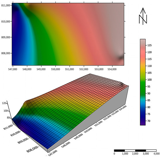 This study used a grid input of a minimum contour of 65 m with a maximum contour of 130 m and a contour interval of 5 m. The grid volume computations are revealed in the table below. The upper surface uses 50 rows × 100 columns grid sizes with average reports, as stated in Table 5 below.