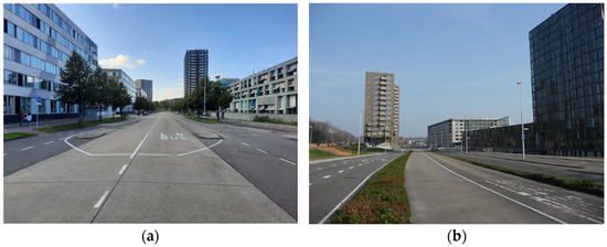 Two images captured from the center of Carolina Macgillavrylaan (a) facing north-west; (b) facing south-east.