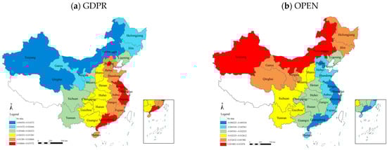 (2) OPEN represents the annual foreign investment of each province. This indicator can reflect the degree of openness and economic changes in a region. Research has confirmed that opening up to the outside world can stimulate a country’s innovation capabilities and improve productivity levels [84]. These advantages may have a positive impact on the development of UER and NQP.