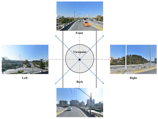 Viewpoint picture collection from four different directions. The urban landscape in a viewpoint can be broken down into four images: the front image, the back image, the left image, and the right image.