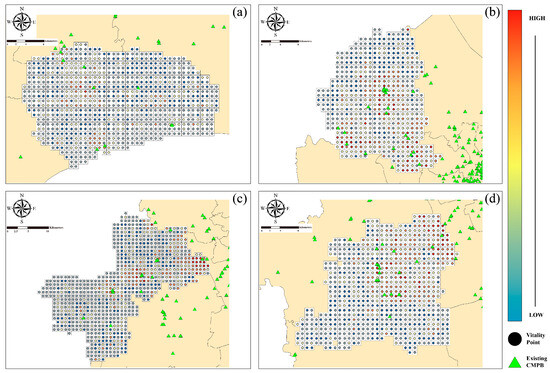 Overall, the potential VVVs prediction analysis for CMPBs in the four administrative districts can assist designers in better understanding the current situation and conducting more informed planning. By considering relevant legal provisions and land-use restrictions [37], designers can select more suitable sites for CMPBs construction and work on improving the VVVs of existing CMPBs. We can provide effective guidance for planning operations from multiple aspects, such as site selection, planning strategies, scientific decision-making, resource allocation, and land-use efficiency based on the above model prediction results.