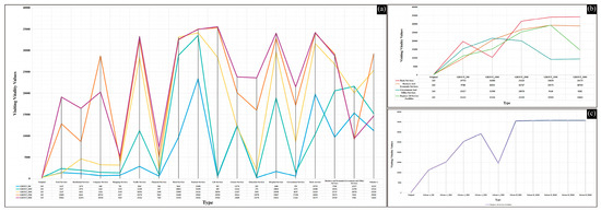 Numerical analysis of VVVs improvement in museums in Songjiang. (a) Comparing all experimental groups except Scheme B. (b) Comparison of “First Category Service Facility Classification Change” experiment. (c) Comparing the “Replace All Service Facilities” experiment.