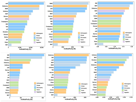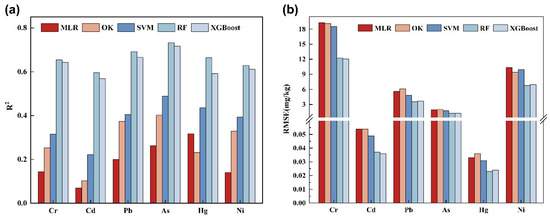 - Nie, S.; Chen, H.; Sun, X.; An, Y. Spatial Distribution Prediction of Soil Heavy Metals Based on Random Forest Model. Sustainability 2024, 16, 4358. [Google Scholar] [CrossRef]