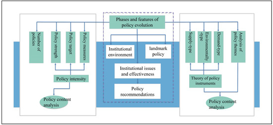 This study focuses on the quantitative analysis of scenic and historic area policies using content analysis. Content analysis is a method of converting policies expressed in words into numerical data by identifying key features in the text, and then statistically analyzing the data to discover patterns [72]. It requires a rigorous process of inter-coder reliability testing by transforming the text into systematic coding categories. The study first used content analysis to establish a coded database of scenic and historic area policies. Subsequently, it calculated the policy intensity score from the three aspects of policy strengths, policy targets and policy measures, and measured the policy effectiveness by combining the analysis of the changes in policy number. Thereafter, based on the theory of policy instruments, the policy instruments of scenic and historic areas were classified and counted, and the internal characteristics of policies were analyzed by combining the statistics of policy topics. Finally, based on the results of the policy analysis, the characteristics and effectiveness of the institutional development of scenic and historic areas were summarized. The research framework is shown in Figure 2.