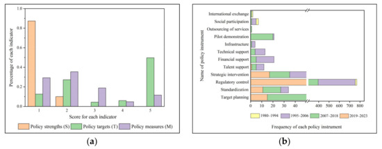 In the Formula (2), i is the year of the policy release, n is the number of policy items in year i, j is the jth policy in year i, Sj is the strength of the jth policy, (tj + mj) is the sum of the scores of each policy target t and policy measure m for the jth policy, and (tj + mj) is the sum of the scores of each policy target t and policy measure m for the jth policy [77,78,80].