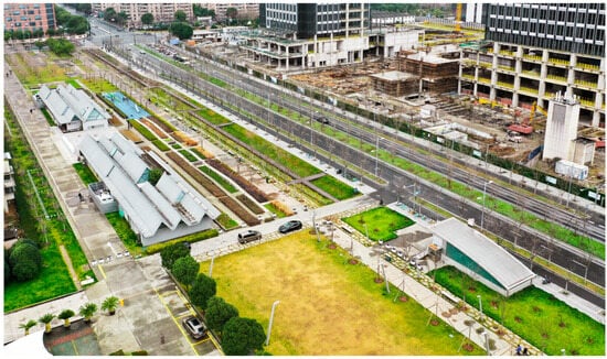 The park was originally an abandoned north–south concrete runway of the former Longhua Airport. The Sasaki design team participated in the project and proposed to transform the original runway into a linear park that preserves the aviation historical and cultural imprint. The Longhua Airport runway has reemerged into people’s sight, evoking memories of the old runway among the surrounding residents (Figure 3). Through a series of innovative and restorative measures, the project has strived to implement sustainable development principles in terms of ecology, society, and economy, leading the way to a new urban lifestyle.