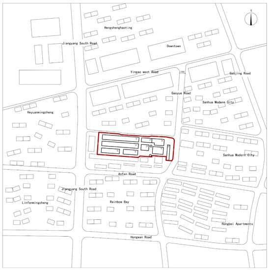 In this study, we have selected a highly representative industrial heritage park in Shanghai, which is considered the largest industrial city in modern China []. Specifically, we have chosen the manufacturing park of Shanghai Sanlinqiao Nitro Thermos Guts Factory to analyze the spatial structure issues of the industrial heritage buildings. To achieve this, we have employed the method of social network analysis and proposed a targeted solution strategy. The Sanlinqiao Nitro Thermos Factory boasts a rich history spanning over three decades. However, as time has passed, the once thriving manufacturing park has experienced a gradual decline, resulting in the preservation of only a collection of aging factory buildings (Figure 1 and Figure 2). The vicinity surrounding the park is characterized by a limited availability of land resources and a dearth of public spaces for communal engagement. Consequently, there exists a pressing demand for the establishment of a dynamic and extensively interactive community activity center. The interior space of the Sanlinqiao Insulated Bottle Gallbladder Factory is characterized by its spaciousness and significant social and cultural value. Transforming the area into a community cultural center, cultural exhibition, and recreational complex can effectively utilize the land, boost the liveliness of the region, and simultaneously cater to the public’s demand for cultural activities, entertainment, and recreation.