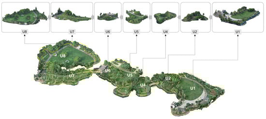 At present, the application of point cloud models in the landscape field has focused mainly on the visualization and presentation of 3D space and recording and identifying morphological characteristics [27,28,29,30] that correspond to the site survey and information acquisition stage in the early stages of design. Several researchers have also relied on 3D point cloud models to carry out spatial quantitative analysis, such as 3D green quantity analysis [31,32], visibility analysis [33,34], and climate simulation analysis [35,36,37,38]. There are also studies trying to use 3D point clouds to achieve 3D visual intelligent detection and analysis [39]. The efficiency, accuracy, comprehensive results, and feasibility of spatial quantitative analysis based on 3D point cloud data have been verified. In addition, the 3D point cloud format has the advantages of being classifiable, editable, and segmentable and has good compatibility with various spatial analysis and processing platforms. A 3D point cloud model can provide accurate spatial morphological information and meet the demands for refined spatial information acquisition, processing, and analysis.