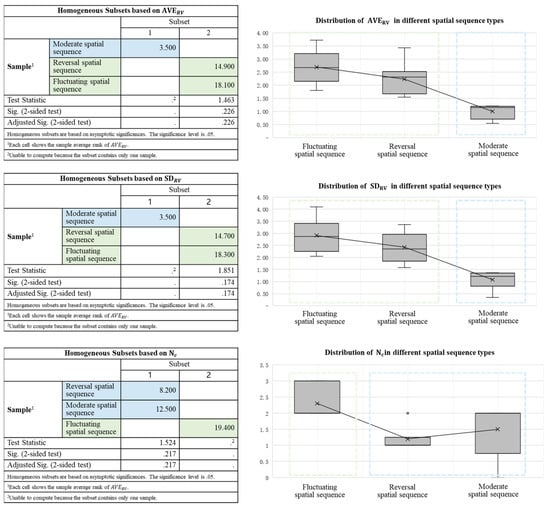 The of the moderate type was between the range of [0.54, 1.21], the was between the range of [0.35, 1.37], and the was usually no more than 2. The thresholds of and for the moderate sequences were significantly lower than those of the other two types. In this type, the RVs of adjacent units were generally less than 1.21, the was generally less than 1.37, and the intergroup intensity of change and the degree of difference between adjacent units were not significant.