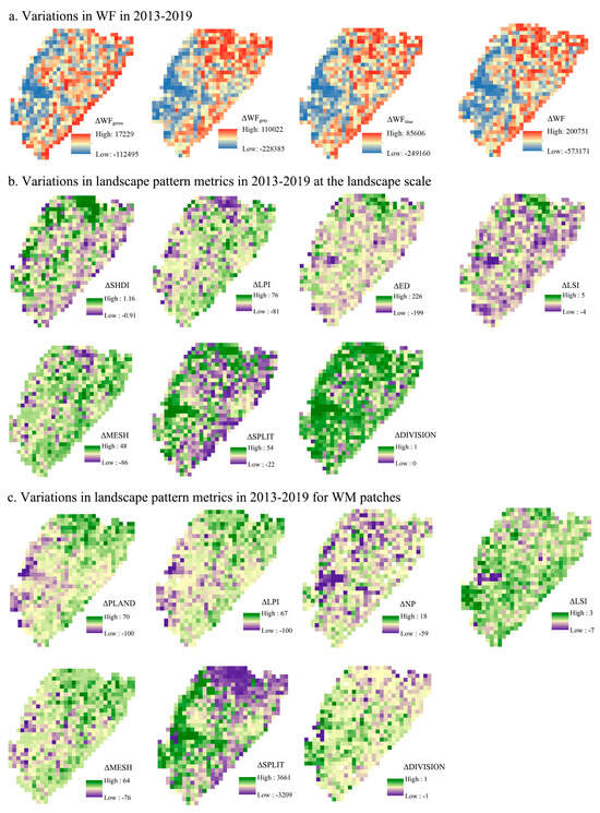 3.3.2. Time-Based Effects of Landscape Metrics on Water Footprint at the Landscape Scale and in WM Patches