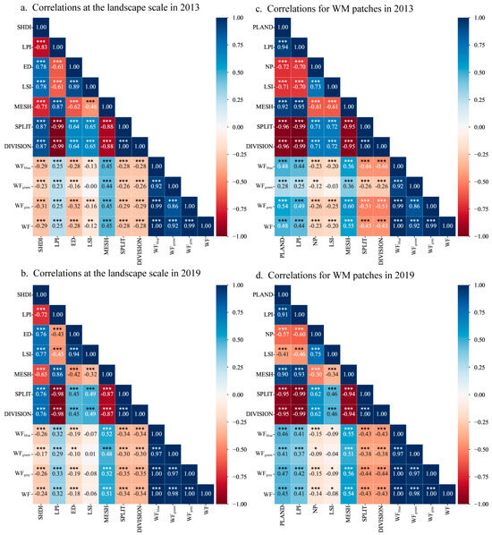 3.3.1. Correlations between Water Footprint and Landscape Metrics at the Landscape Scale and in WM Patches