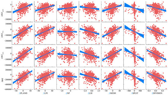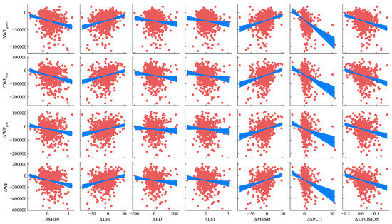 | ΔPLAND | −1.14 | 4.27 *** | 16.16 *** | 17.40 *** | 37.84 *** | −4.87 | −18.42 | −19.84 | −43.13 |