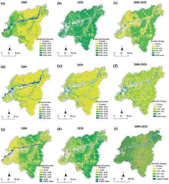 (a–i) Spatio–temporal distribution of ”Production–Living–Ecology” functions.