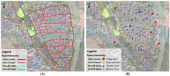 Street and door hierarchy. (A) Road hierarchy. (B) Door hierarchy.