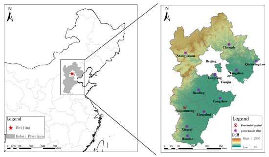 Hebei Province has an enclave located between Beijing and Tianjin, consisting of Dafang County, Xianghe County, and Sanhe County. Since part of the data does not cover this enclave, and its small area has less impact on the overall results, this enclave is excluded from this study to ensure the completeness and rigor of the study.