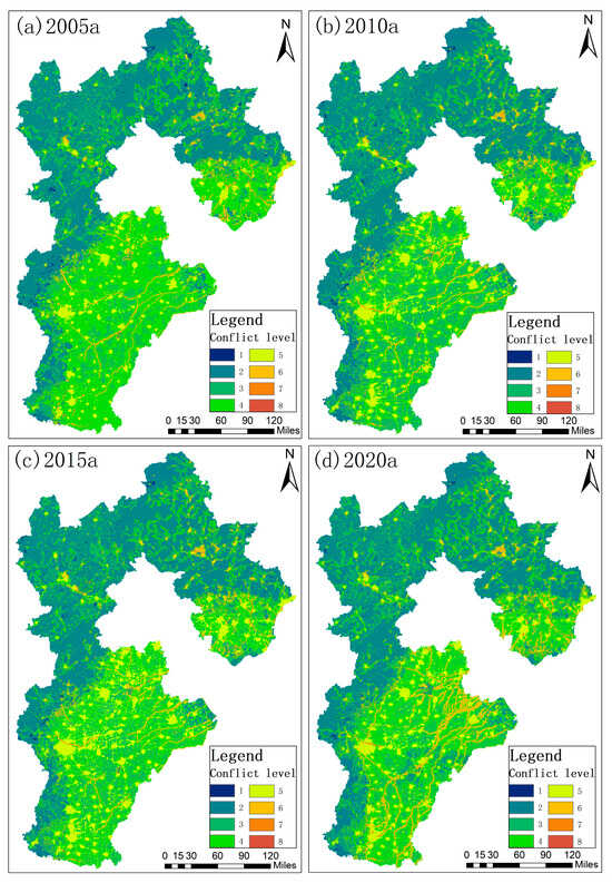 Distribution of landscape conflicts in Hebei, 2005–2020.